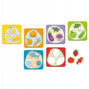 Edukacyjna układanka, dzięki której podczas wesołej zabawy mały gracz odkrywa, jak wyglądają poszczególne przekąski, i uczy się klasyfikowania według kolorów.