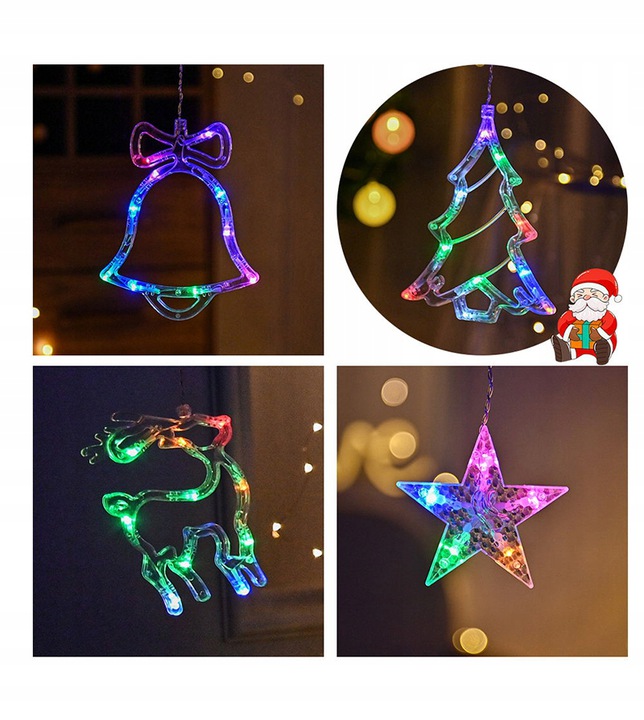 KURTYNA ŚWIETLNA – WISZĄCE RENIFERY/CHOINKI/DZWONKI